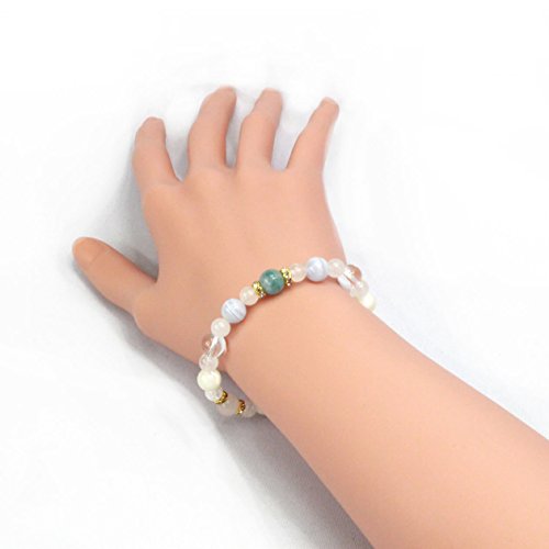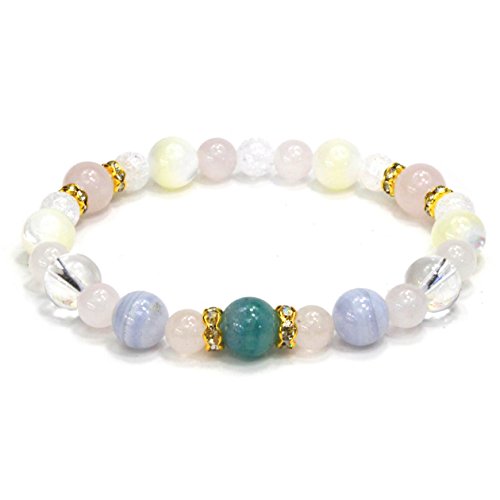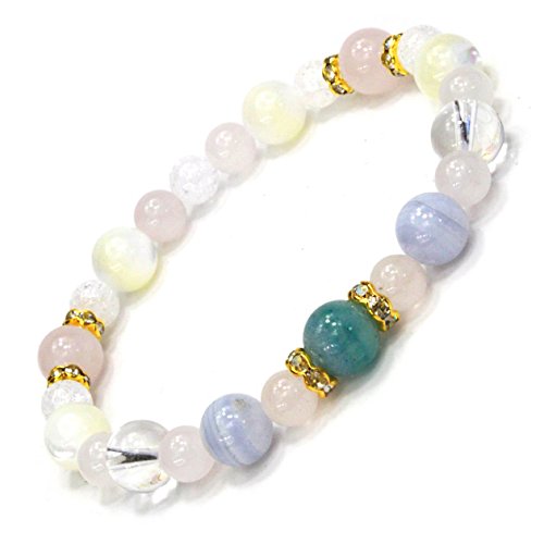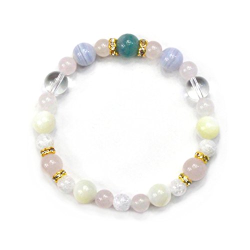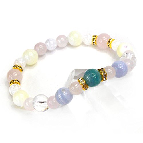 ◆사용석…블루《아벤추린》:약8mm,블루레이스:약8mm,로즈 쿼츠:약8mm6mm,쿼츠:약8mm,마더 오브 펄:약8mm,크랙 쿼츠:약6mm ◆심재…신축성 실리콘 고무 *론 델 파트는 큐빅 지르코니아와 놋쇠제입니다.