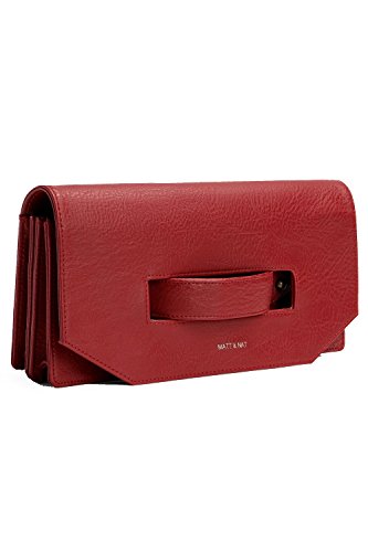 -. Binding : Apparel -. Brand : Matt & Nat -. Department : womens -. Feature : Made from Polyvinyl Chloride with 100% recycled nylon lining / Features two inside compartments and one zippered pocket, plus six integrated credit card slots / Flap closure with cutout for handle / Measures 10" X 5" X 2.5" / Made in China -. ProductGroup : Apparel -. ProductTypeName : ACCESSORY -. Title : Matt and Nat Abiko Vegan Leather Clutch