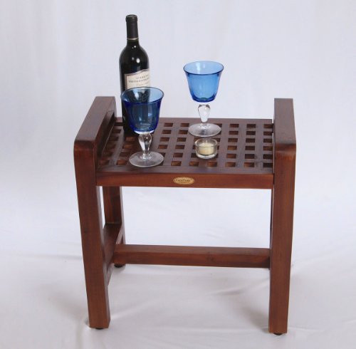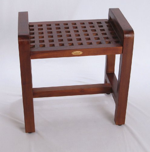 Contemporary Teak Shower Stool- 20"- Espalier Lattice Pattern- Adjustable Height Foot Pads