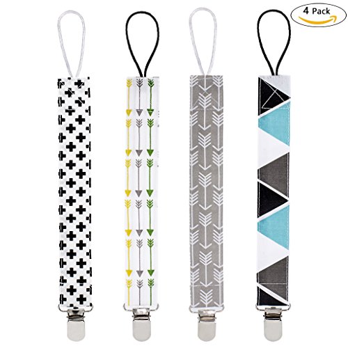 -. Title : Pacifier Clip, ILDOCK 4 Pack Unisex Stylish Designs Great Pacifier /Teething Ring Holder - Unique Baby Shower Gift