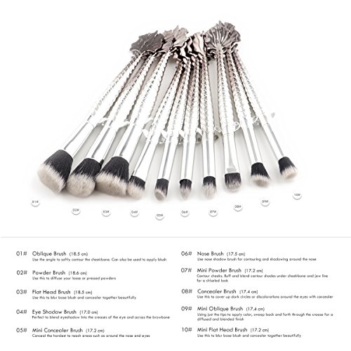 - Package: 10pcs/set, including oblique brush, powder brush, flat head brush, eye shadow brush, mini concealer brush, nose brush, mini powder brush, concealer brush, mini oblique brush, mini flat head brush