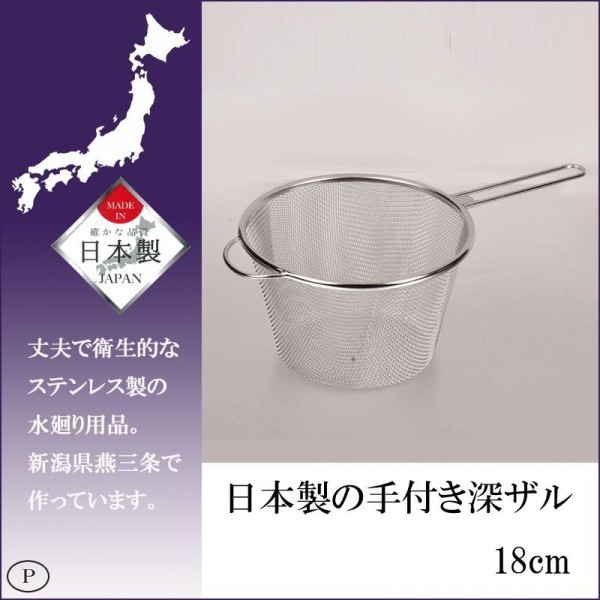 新潟県の燕三条で作られた、日本製の手付き深ザルです。