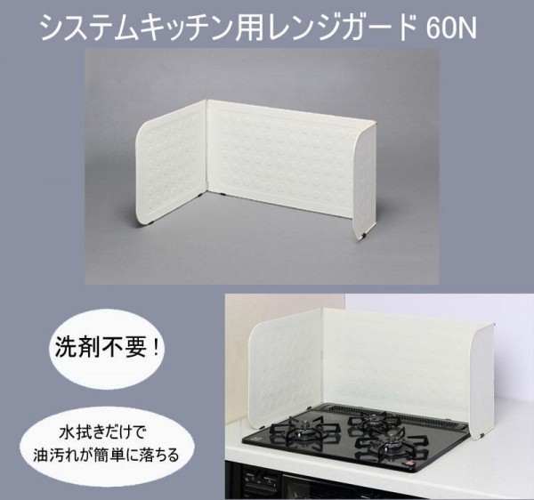 丈夫なスチールタイプ、繰り返し使えて経済的♪ 製造国:日本 素材・材質:本体:亜鉛メッキ鋼板(ベラスコート塗装)シャフト:ステンレス(SUS430)すべり止めゴム:合成ゴム 商品サイズ:W660/870×D440×H353mm 仕様:取扱説明(製品のパッケージ及びラベルにて記載されています) ※サプライヤー直送品 ※2019年1月中旬入荷分予約受付中【商品名】システムキッチン用レンジガード60N RGS-60N