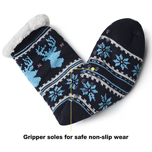 -. Binding : Apparel -. Brand : MissDill -. Department : womens -. Feature : Super warm:Women winter socks are made of acrylic fibres together with the lining is polyester. Super thick fleece interior for maximum warmth and comfort. / Non-slip:Made of Polyester with Skid Resistant Sole.Non-skid bot to prevent slipping and sliding. / Fit:Length of sole is 10 in" and the height is 9 in".Suitable for women US size 5 to 10.They are elastic and perfectly make it suitable for your feet. / Multi-function:Can be worn with sandals, shoes, boots, or as non slip socks slippers or just around the house. / Durable:Not easily deform and no scuff to any Floor.It's your bestchoice whether you wear it yourself or present it as a gift. -. IsAdultProduct : 0 -. ProductGroup : Apparel -. ProductTypeName : SOCKSHOSIERY -. Title : Slipper Socks Fleece-Lined Cozy Thick Winter Knee Highs Stockings for Woman?Girl by MissDill