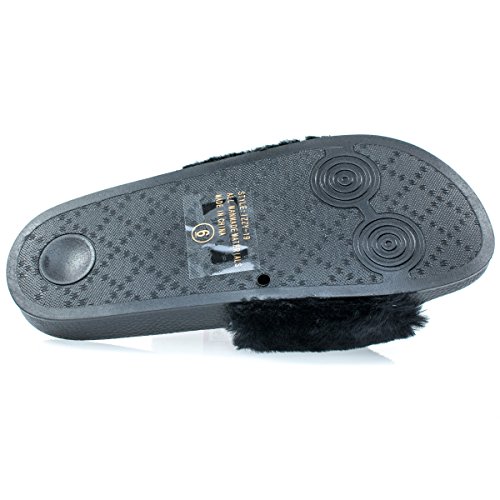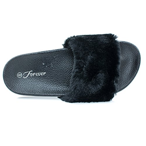 Binding : Apparel Product Description About This Shoes :Step in comfort with footbed molding slippers with fluffy faux fur foot strap. Brand - Forever Link Colors Available: Black, White, Leopard (listed as brown) Occasion: Casual Shoe Type: Flats- Open Toe Shoe Style: Slides Inner Lining: faux-shearling-or-fur Heel Height In Inches - 0.25 Heel Style - Toe Style - open-toe Platform Height In Inches - 0.5 Shaft Height In Inches - n/a Circumference Opening - n/a Strap Type - Sole - man made Condition: New without box(shipped in padded envelope) All Man Made Material unless otherwise stated. Computer/Phone/Table monitors might show color differently because of its quality or calibration, we suggest you look at the photo in at least 3 monitors if you need exact color match of your shoes. 0