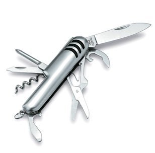 -. Feature : シンプルで扱いやすい9種類の機能がついた万能ツールです。アウトドアや防災グッズとしても / ①ナイフ ②ハサミ ③缶切り ④栓抜き ⑤マイナスドライバー ⑥プラスドライバー / ⑦キーリング ⑧コルク抜き ⑨やすり / サイズ 約90×25×15mm 材質 ステンレス 重量 86g