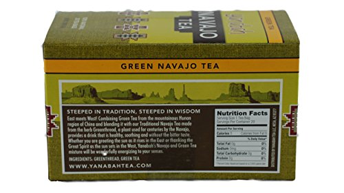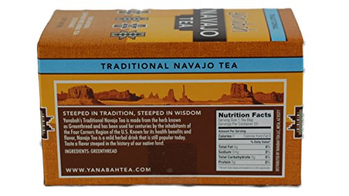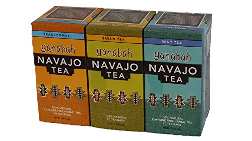 Studio : Yanbah Tea Publisher : Yanbah Tea Binding : Misc. Product Description What is Navajo Tea? Navajo Tea is an all natural caffeine free herbal tea. The Navajo Tea plant is indigenous to the Southwest where it has been harvested from the wild by generations of Navajo people as well as other Native American tribes. What does it taste like? Navajo Tea has a smooth earthy flavor with a hint of natural sweetness. There is absolutely no bitterness which makes it a very pleasant and relaxing herbal tea to drink. It pairs perfectly with a bit of Agave nectar or honey which bring out delightful floral undertones. Is Navajo Tea healthy? There is a rich tradition among Navajo people of using Navajo Tea as an herbal remedy for colds, muscle stiffness, and anxious minds. Studies have revealed that Navajo Tea contains a flavonoid called Luteiolin which is a natural anti-inflammatory. Most importantly, it is a delicious herbal tea that is most often enjoyed simply for its taste and smell. Is Navajo Tea Caffeine Free? Yes. Like Chamomile or Rooibos, Navajo Tea is a caffeine free tea. Is it in tea bags? Each box of Yanabah Navajo Tea comes with 20 tea bags. Who is Yanabah? Our tea is named for our grandmother, Yanabah. Her traditional Native American ways were grounded in simplicity and beauty. Every summer she picked enough Navajo Tea from the high meadows of Northeastern Arizona to last through Fall and Winter. There was never a visit to Yanabah's house which did not involve Navajo Tea. Today, Yanabah Tea is a Navajo owned family company.Try our Sampler. We take a box of our Traditional Navajo Tea, and pair it with a box of our Navajo Mint combination and a box of our Navajo Green Tea mixture. Try all three and be amazed.