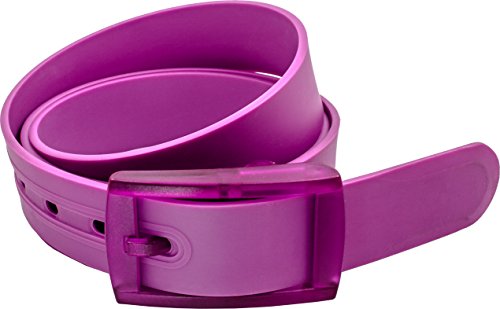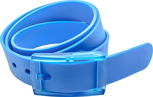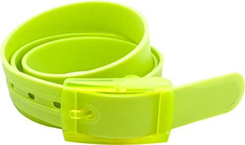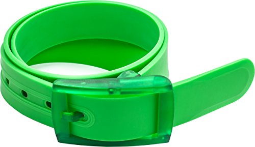 Flexible colored silicone belt comes in one size cut-to-fit. Can be easily adjusted to the size desired. Simply need to detach the buckle and cut to the desired length.
