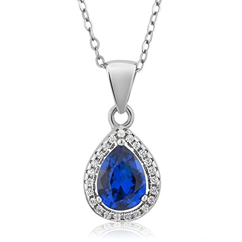 CARAT TOTAL WEIGHT - 6.50 CT (This item is proudly custom made in the USA). Center Stones: 9x7 mm, Small Stones: 1.1 mm; Pear Shape Blue Simulated Sapphire Pendant Earrings Set Crafted in 925 Sterling Silver With an 18 Inch 925 Sterling Silver Chain.