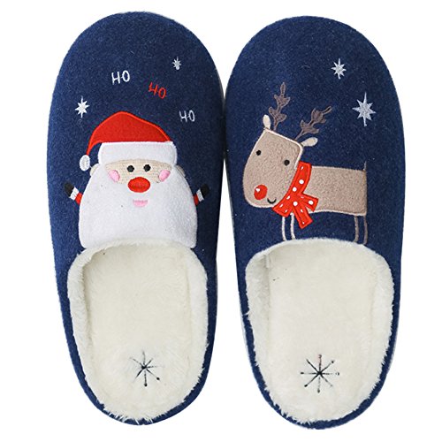 -. Feature : HIGH QUALITY & WELL-MADE: Selected with knitted cotton material that can absorbs the sweat from your feet quickly after a long day walking. The high density foam insole makes these slippers flexible so they will conform to your feet and retain their shape. / WATERPROOF HEIGHTEN OUTSOLE: Heighten outsole make sure you can walk outside, waterproof and breathable. Padded fur lining, offer you a feeling like walking on the cloud, really freaking soft and comfortable, relax your stress. / REMEMBER THE CHRISTMAS: Comes with cute Santa Claus and deer to catch your eyes, increase the atmosphere of festivals. Seam crafted slippers, solid and reliable and fashion design to keep your feet nice and warm. / KEEP SHAPES FOREVER: Slip on closure with anti-skid rubber sole, super softness and comfortable without deform or scuff to the floor, provide you to get more safety guarantee, longer the service of our house slipper. / DON'T MISS IT: Great indoor slippers for wearing in indoor house home bedroom, kitchen, dining room, office, study room, etc. It is an awesome gift for Christmas, birthday, New Year, Anniversary to friends, mother, girl or boy friend, colleagues and you family members.