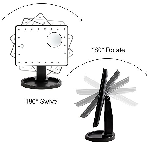- 180 DEGREE FREE ROTATION. Free rotation adjustable angle can fits you any make up position and viewing angle. ✔ 10x Removable Magnifying Mirror make sure every detail of your makeup are in place, works best for do detail things, like putting eyeliner, mascara, eyebrows, contact lens, etc.