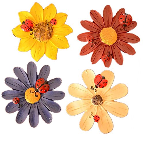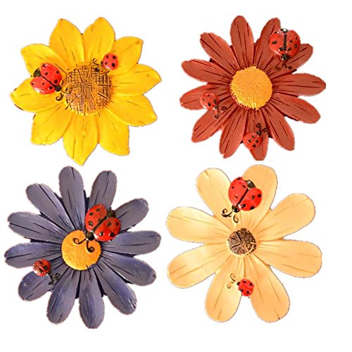 Bonaweite 4-Pack Natural Sunflower Ladybug Refrigerator Magnets Assorted Colors