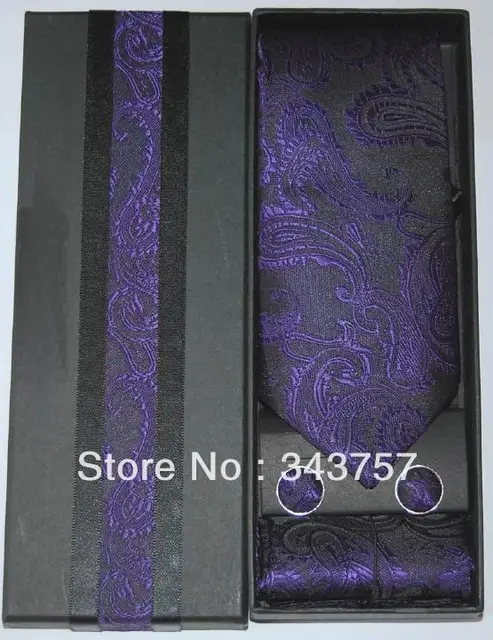 | [해외]GBD63 새로운 다크 퍼플 페이즐리 자카드 짠 실크 남성의 넥타이 커프스 손수건 세트 넥타이 |
