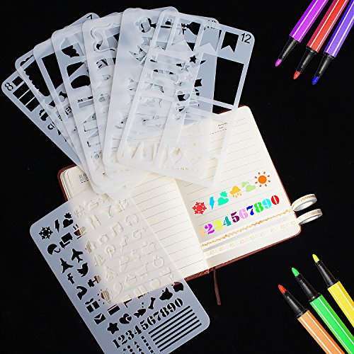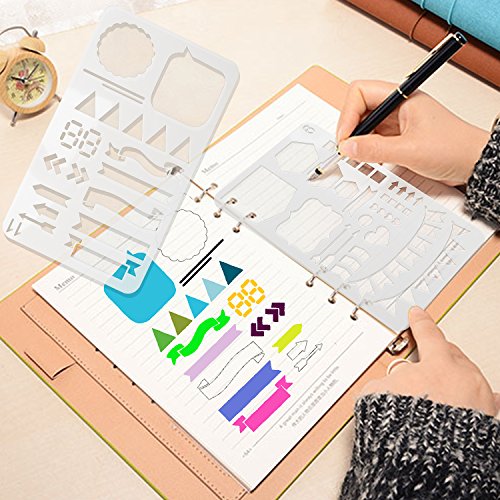 Outee 12 Pcs Bullet Journal Stencil Plastic Planner Stencils DIY Drawing Template Stencil with One Transparent Pencil Case and 2 Adhesive Tape for Journaling, Card and Art Projects Package included: 15 Pcs in total. 12 * Bullet journal stencil, 1 * Transparent pencil case, 2 * Adhesive tape. Size(L * W): 18 * 10.5 CM/7.1 * 4.2 Inch. Material: Made of plastic that durable and flexible. The material is also reusable and cleanable, so it can be used for a long time. Product warranty: We provide 48-day money-back and 24-month warranty. So feel free to contact us if you have any question.Feature