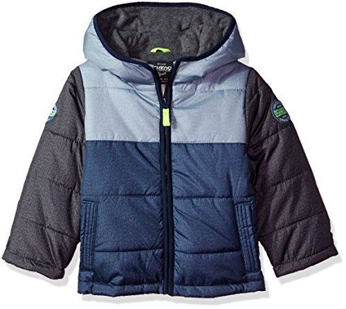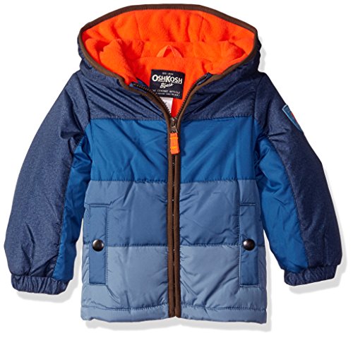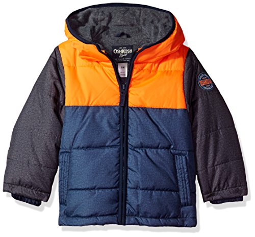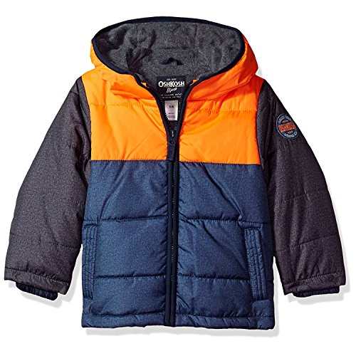 Osh Kosh Little Boys' Toddler Classic Heavyweight Colorblock Puffer Coat, Navy, 4T