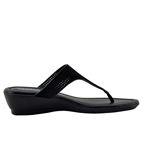 Product DescriptionSmooth synthetic upper, Classic T-strap silhouette, Easy Slip-on style,Short wedge design for a subtle lift, Rubber outsole for grip,Heel Height: 1.50 inch0