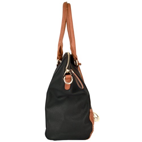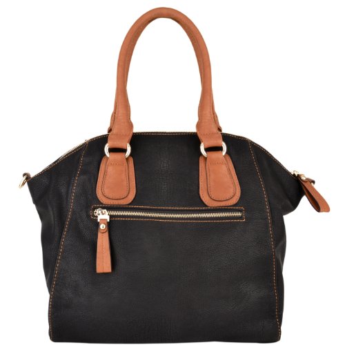 - Feature : **Official MG Collection® product made by MyGift®** / Strike the perfect balance between chic and casual with this gorgeous bowler handbag. / Spacious satchel handbag wtih 2 pocket-style organizers, 2 zippered pouches, and 1 large pocket. / 2 top rolled handles or the detachable shoulder strap to carry this shopper tote wherever you need to go. / Approximate Dimensions: Exterior - 17.5" H X 13" W X 4.5" D; Interior - 13.25" H X 12.5" W X 4.5" D; Handle - 6.5" drop; Shoulder Strap - 25" drop