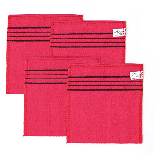 - Feature : Four items packaged (5.5x6.5(14cmx16.5cm) inch each) 100% Viscose Rayon exfoliating scrub bath mitten. / As it shrinks after soaked in water, it needs to be stretched back to tightly fit user's hand to provide the best surface tension and the rough feel idealized for exfoliating purposes. / Made of 100% Viscose Rayon from naturally occurring fibers ideal for revitalizing skin by improved circulation; bacteria resilient and machine washable. / Gentle scrubbing will remove dead (and dry) skin cells and clean skin pores to eliminate blackheads. / Monthly usage will ensure healthy and smooth skin that is blemish and blackhead free with diminished wrinkles (due to improved collagen) and the results will be immediate and last for weeks.
