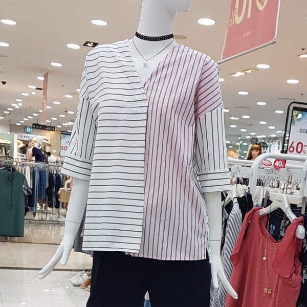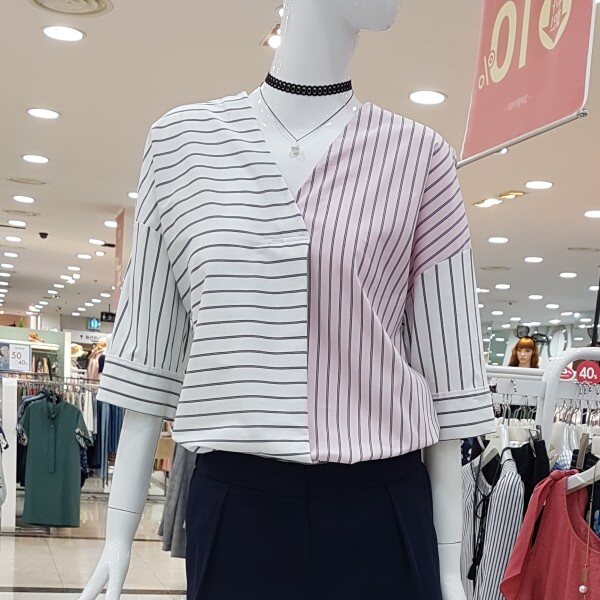 언밸스트라이프에 세련 블라우스네요V넥선에 날씬하고 멋스럽네요촉감좋은 면소재에 혼방은 구김적구용언밸패턴에 날씬,세련한 요아이~~^^득템가격에 만나보심~완젼 굿!