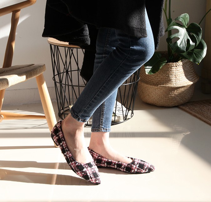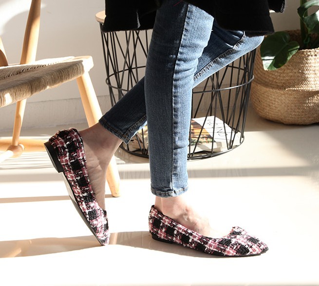 商品名:パンプス レディース ローヒール ツイード ペタンコ 2017 秋 冬 ファッション 靴 婦人靴