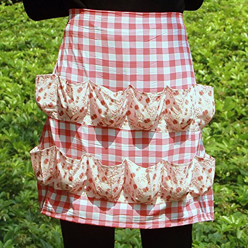 Hense Apron with 12 Pockets, Perfect for Farmer House-hold Clever Housewife Must Have Apron(HSW-027-001 red/white checks with pink floral)