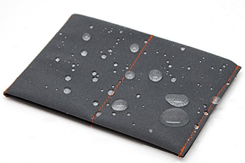 -. Feature : Made in San Francisco from 70mph crash-tested synthetic material. This technical fabric was custom produced using funds raised on Kickstarter, is more expensive per square inch than most leathers, and is MUCH more abrasion resistant. / 2-3 times thinner than leather wallets (material is just .5mm thick). 100% waterproof, stain resistant, and machine washable. Delicates bag recommended. / Ideal for 8 cards depending on amount of cash / Deep pocket for all international currencies, large checks, and boarding passes / 5 Year Warranty