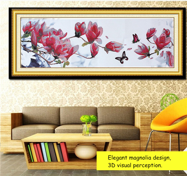 Cross Stitch Embroidery Kit Magnolia Design 3D Pattern 124*48cm Home Decor