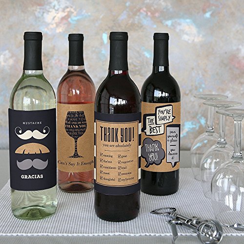 Thank You - Wine Bottle Labels Thank You Gift - Set of 4