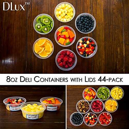 ENJOY USING HIGH QUALITY FOOD CONTAINERS WHEN YOU MAKE DLuxTM's 44 PIECE SET OF 8 OZ DELI CUPS A PART OF YOUR KITCHEN GEAR