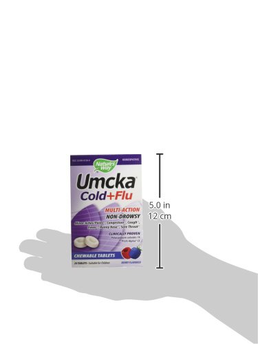 Nature's Way Umcka Cold and Flu Chewable, Berry is a tasty way to relief symptoms such as aches, congestion, cough, fever, runny nose and sore throat.