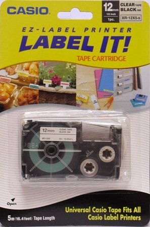 Title : Brand New Casio Universal Label Tape- 12mm Black Ink on Clear Tape. FITS ALL CASIO LABEL PRINTERS!
