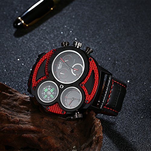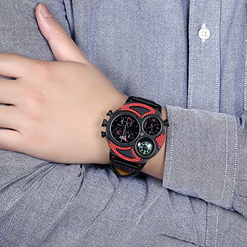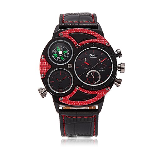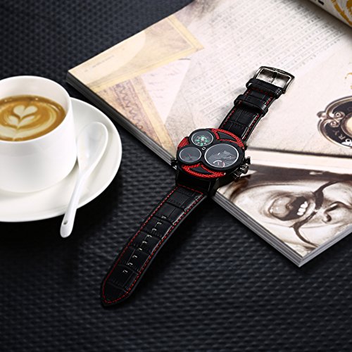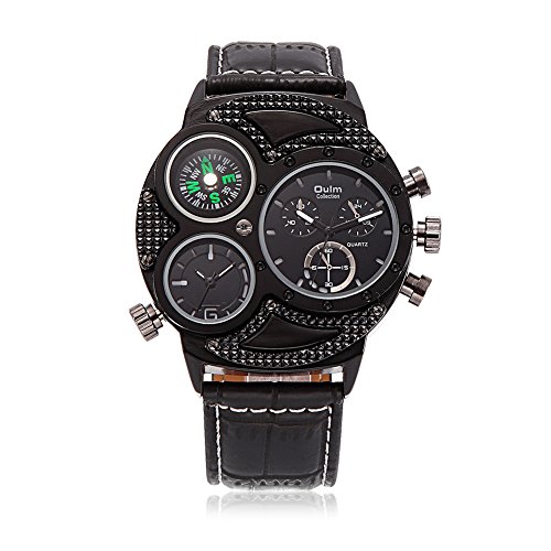 Rockyu 인기 손목시계 브랜드 맨즈 시계 레이디스 나침반 캐주얼 사파이어 유리 블랙 레더 가죽 밴드 [병행수입품]