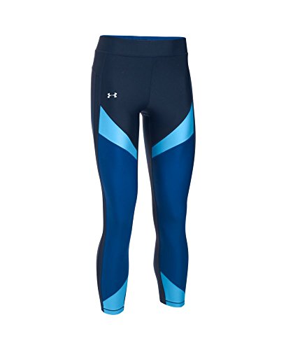 -. Title : Under Armour Women's HeatGear Color Blocked Ankle Crop, Midnight Navy/Carolina Blue, Large