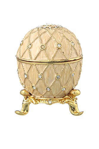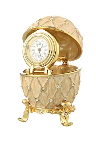 Russian Faberge Style Egg / Trinket Jewel Box Grid with clock 2.4'' cream