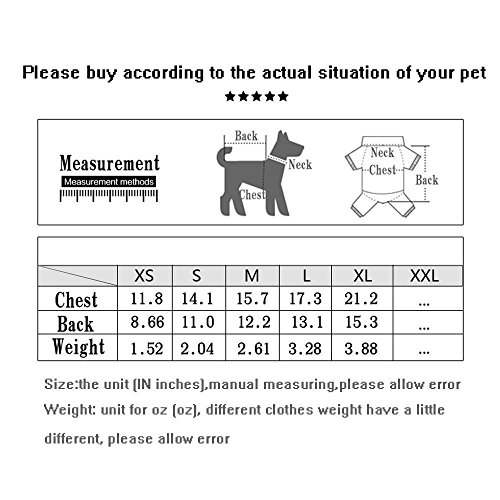 -. Feature : Size:(S:Chest approx 14.1 inch, Back 11.0 inch.L:Chest approx 17.3 inch, Back 13.1 inch).Please check the size carefully before you order,If any of the measurements are 'between' two sizes, choose the larger size / A wonderful pet clothes made by the highest quality fibers for ease care and durability / washing:Washing with water,can use alkaline water(soap,laundry detergent).when you receive new clothes must clean first, for your baby more healthy / occasion:Perfect for everyday wear,holiday,jammies,party or drag show / Super soft and comfortable Fashion shirt for your sweet pet, make your sweet heart more cute and charming