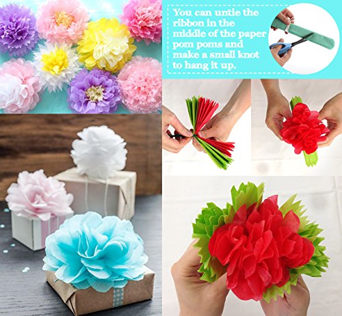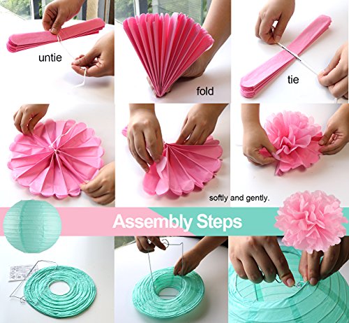 - Each paper flower (coming with a 60cm white ribbon) is pre-folded and pre-cut, all you need is to fluff them out. The paper lanterns are shipped flat, all simple to assemble and hang. With directions and it is easy to fluff and assemble. Better do your homework about how to do before getting started.