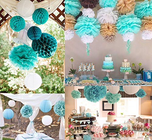 ilauke 21 Pcs Tissue Pom Poms Paper Lanterns Paper Flower Balls for Wedding Baby Shower Birthday Party Decorations