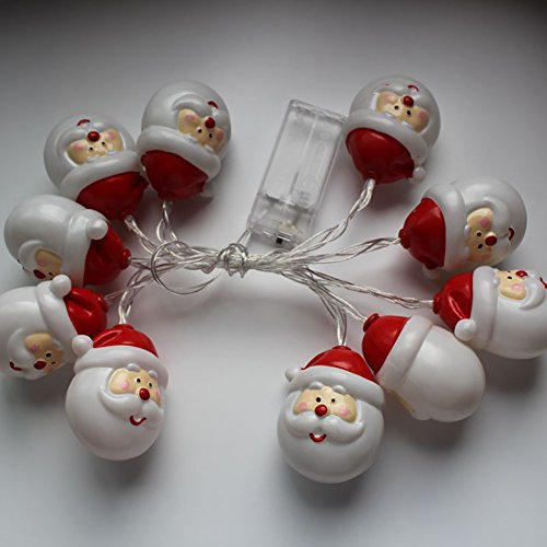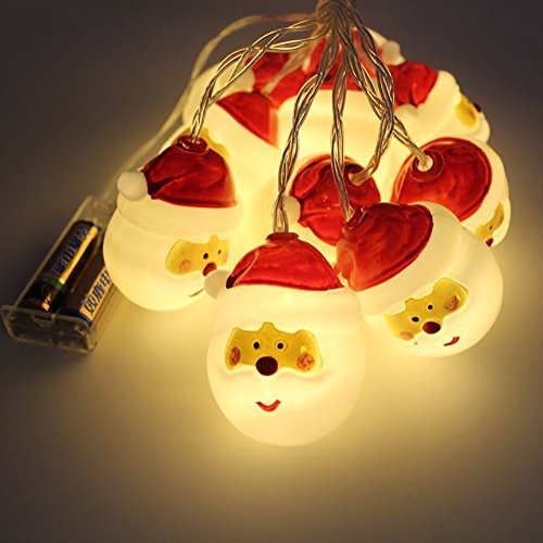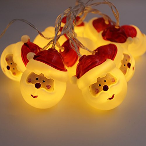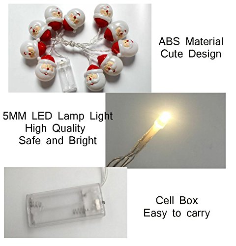 6MILES 10PCS Bulbs Battery Operated Powered 3D Santa Claus Lantern LED Lamp Fairy String Lights Christmas Party Decoration Night Lights Decor (5ft, Santa Claus Yellow)