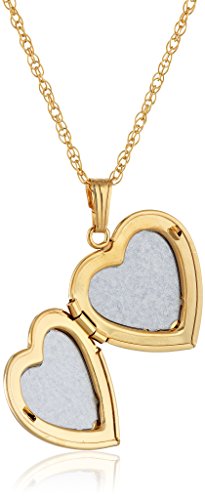 This 14-karat gold-filled locket blossoms with faith and love, featuring a yellow-gold heart-shaped locket body engraved with a cross, flowers accented in red and blue, and a dynamic swirling ribbon pattern.The .79-by-.79-inch locket hangs on an 18-inch gold rope chain with lobster-claw clasp, and is the perfect size for holding a small picture or memento of a special someone. This pretty keepsake necklace is elegant enough to wear with Sunday best attire as well as with casual everyday wear.