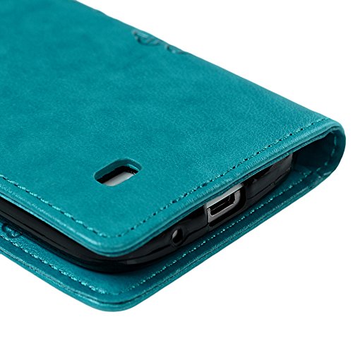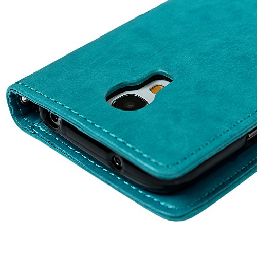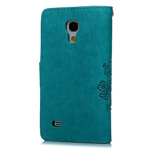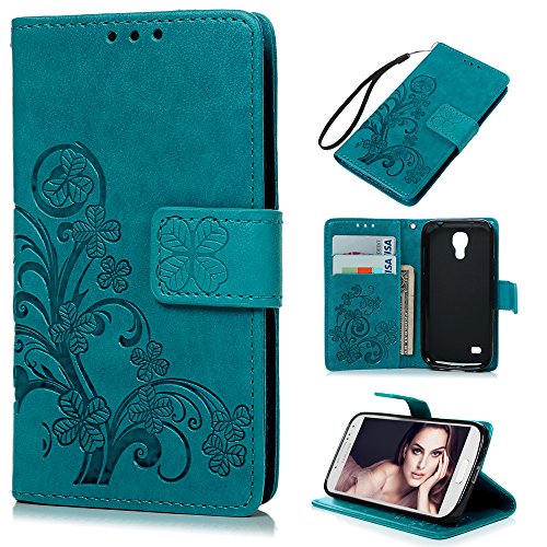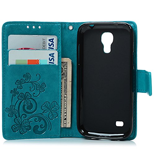 S4 Mini Case (Not for S4) - Badalink Embossed Clovers Premuim PU Leather Texture Ultra-thin Snug Fit Soft TPU Inner Cover with Magnetic Clip & ID/Credit Card Holder for Samsung Galaxy S4 Mini- Blue