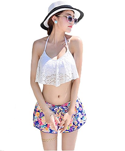 -. Title : Veamor 3点セット水着 レディース ビキニ 花柄 バンドゥビキニ バンドゥー水着通販 フレアレース フリル 小胸もピッタリ ショートパンツ セクシー プチプラ 大人 女の子