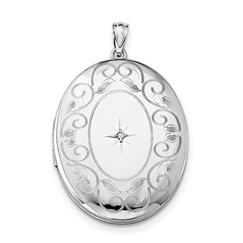 ICECARATS DESIGNER JEWELRY 925 STERLING SILVER DIAMOND SWIRL BORDER 34MM OVAL PHOTO PENDANT CHARM LOCKET CHAIN NECKLACE THAT HOLDS PICTURES