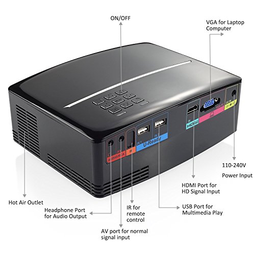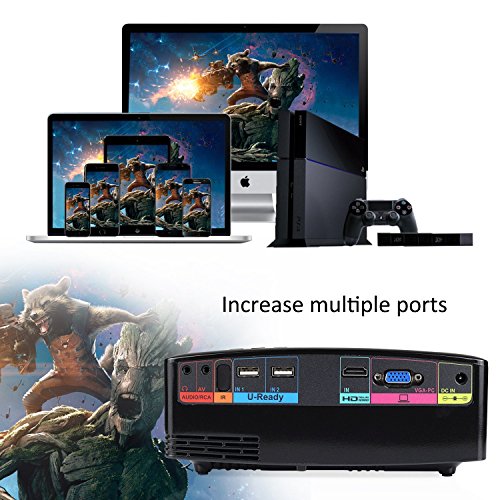 MULTI-CONNECTION: Built-in with AV/VGA/USB/SD/HDMI interface and can connect to the projector with your iPhone, Android,Mac, PC, laptop, DVD, U-Disk/Hard Disk Device, or TV set-top box(STB). Easy to stream content to your projector from your smartphone, games console and more without any compromise.