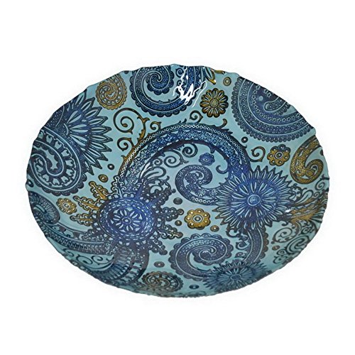 Benzara HRT-12308 12" Blue & Golden Glass Plate