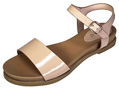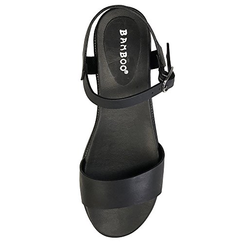 Bamboo Women's Single Band Flat Footbed Sandal With Quarter Strap