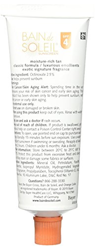 Studio : Bain de Soleil Publisher : Bain de Soleil Binding : Health and Beauty Product Description The Bain de Soleil Gelee sunscreen features a classic formula, as well as luxurious emollients, for a totally unique and sensual experience. Delivers a deep, moisture-rich, longer lasting tan. Lavishes skin with luxurious emollients that leave skin aglow; and indulges the senses with it exotic signature Bain de Soleil fragrance. PABA-free. Dermatologist tested. UVA/UVB protection. 0