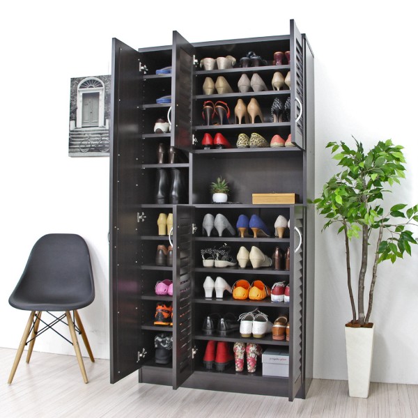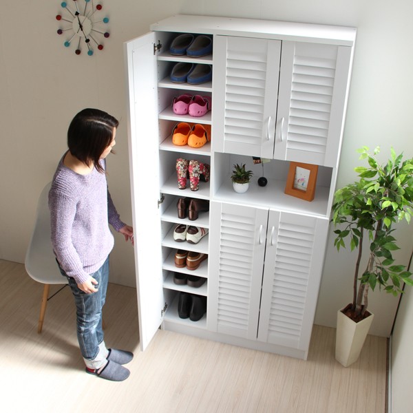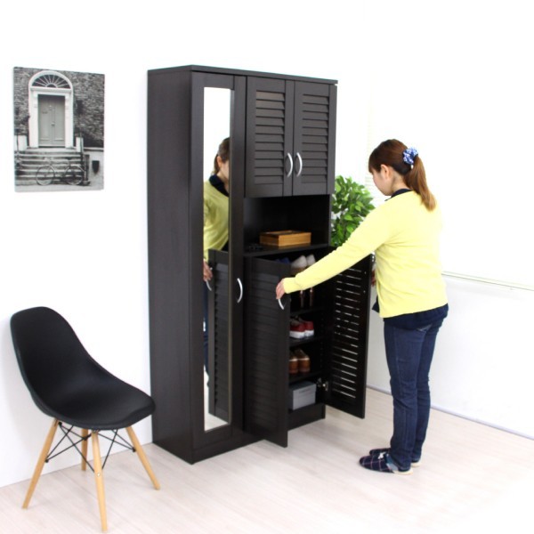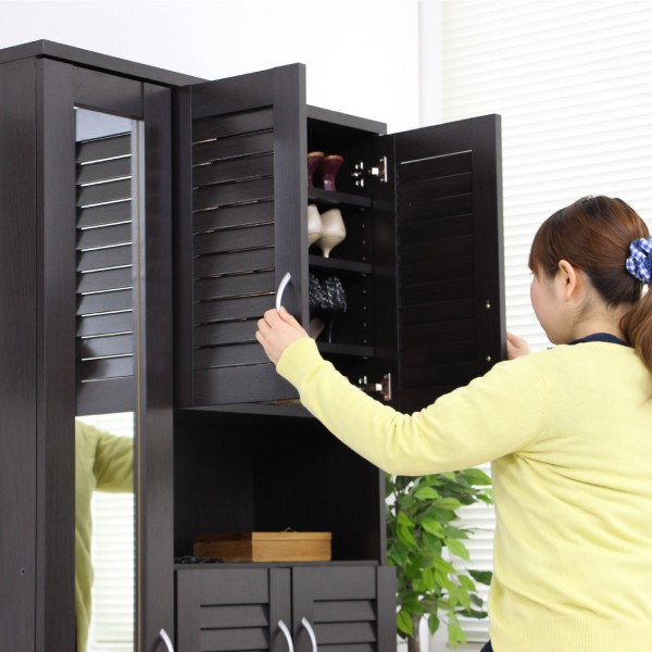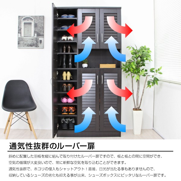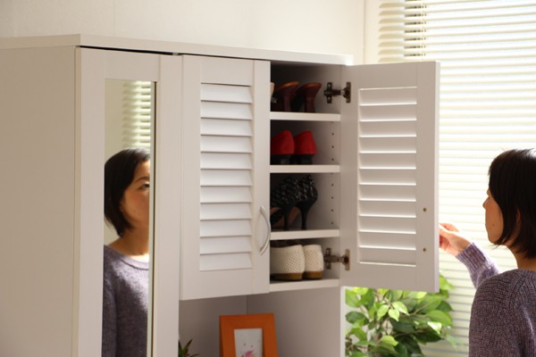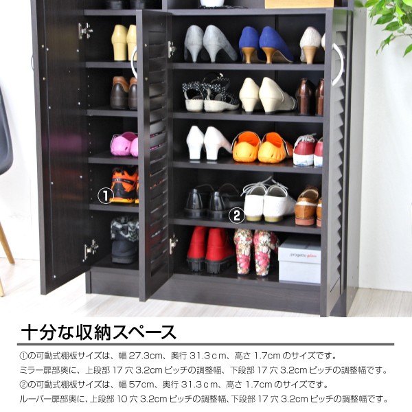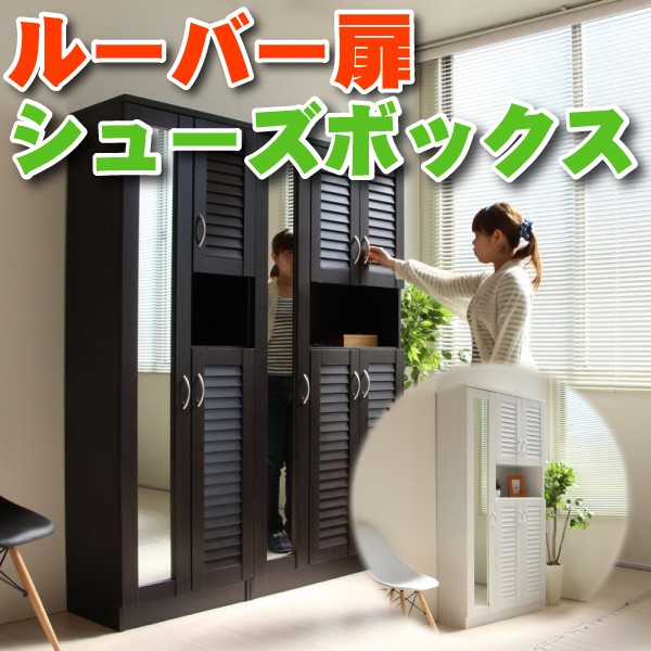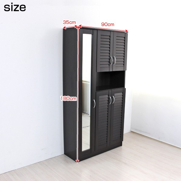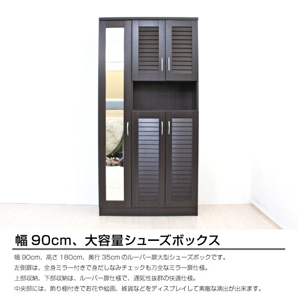 シューズボックス 下駄箱 ミラー付 ルーバー扉 90cm幅 大型 ルーバーシューズボックス 収納棚 壁面収納 ロッカー 木製シェルフ