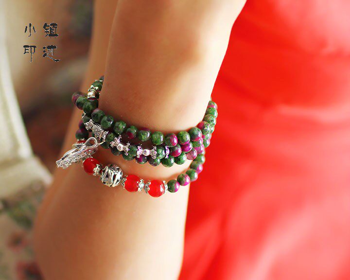 Red and green gemstone bracelet mash