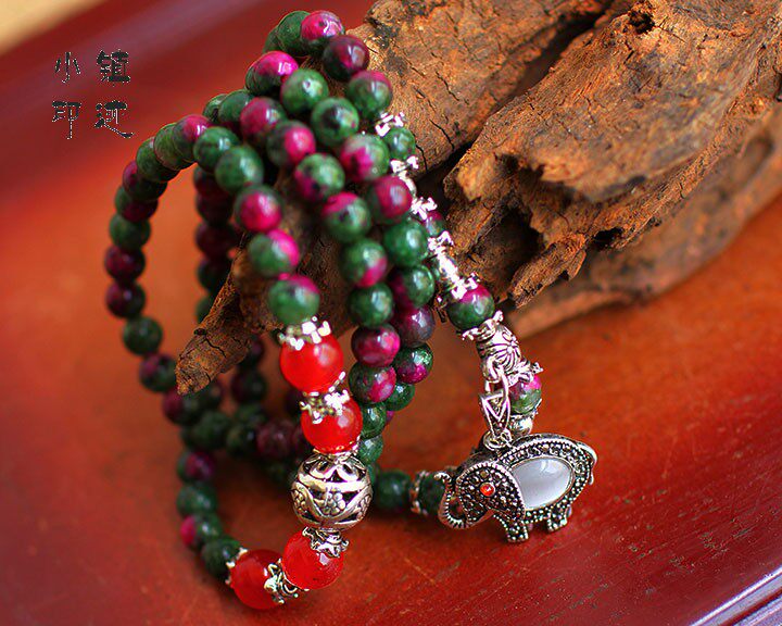 Specifications: Bracelet fold about 37cm (including pendants), precious stones diameter of about 6mm, agate diameter of about 8mm, the baby elephant diameter of about 2.2X1.6cm, can be worn around the hand 4 laps