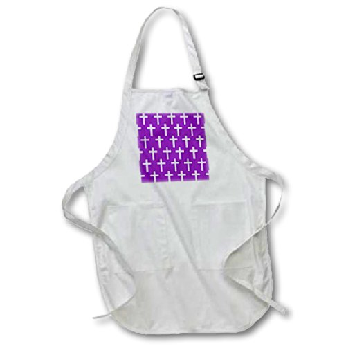 3dRose apr_185499_1 Purple Christian Cross Pattern with White Religious Crucifix Crosses Full Length Apron with Pockets, 22 by 30", White